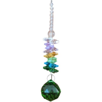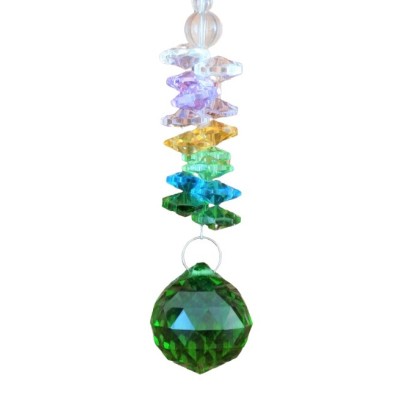 La Suspension Cristal Solaire vert 30mm Cascade multicolore Feng Shui, excellent purificateur et activateur d’énergie positive.