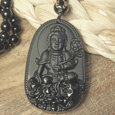 La Suspension Déesse Tara en Obsidienne noire Feng Shui, symbole de libération, de protection et de grande sagesse.