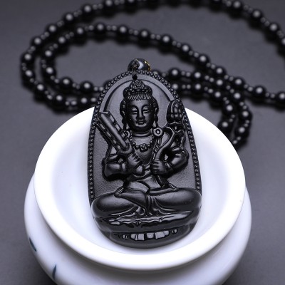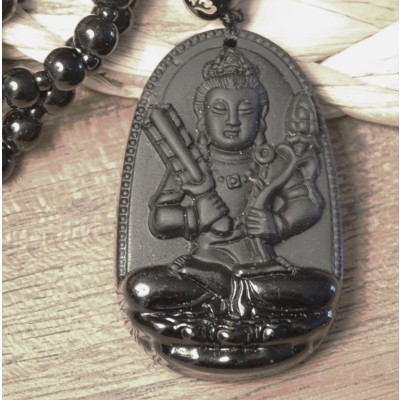 La Suspension Déesse Guan Yin de la Compassion en Obsidienne noire Feng Shui, symbole de libération, de protection et de grande sagesse.