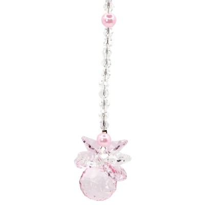La suspension est composée d’un grand cristal à facettes rose de 20mm et de 6 petits cristaux à facettes.