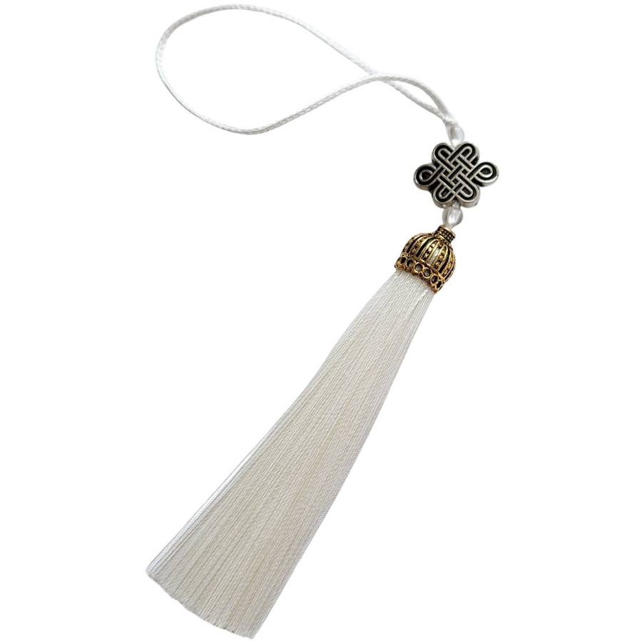 Ce symbole fait partie des huit signes auspicieux du bouddhisme. Il incarne l’interconnexion de toutes choses et la continuité de la vie. Sans commencement ni fin, il évoque la chance durable, la réussite stable et l’harmonie dans les relations.