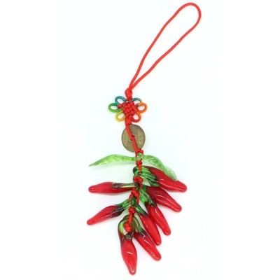 La Suspension Porte Clés Piments, Pièce de monnaie Feng Shui, symbole de bonheur, de réussite et d’équilibre.