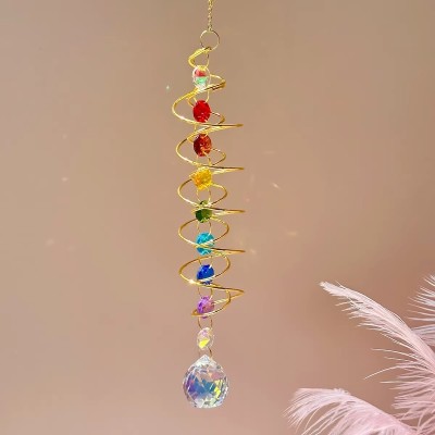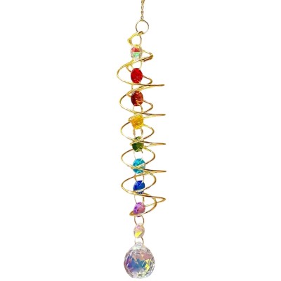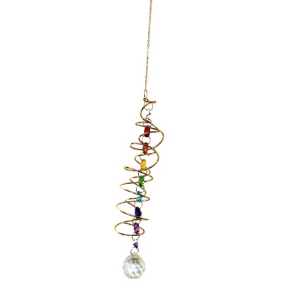 La Suspension Spirale dorée Chakras, Cristal à Facettes 30mm Feng Shui, excellent purificateur et activateur d’énergie positive.