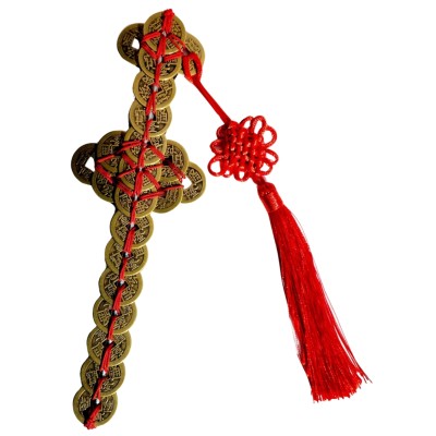 L’épée de pièces chinoises est très réputée en Chine pour éloigner la malchance et repousser les énergies négatives. Egalement appelée “Pi Hsieh Chien” qui signifie épée qui enlève le mal, c’est une amulette de protection très puissante qui coupe le “Shar Chi” ou mauvais Chi et apporte ainsi sérénité et harmonie dans tous les lieux où elle est présente.