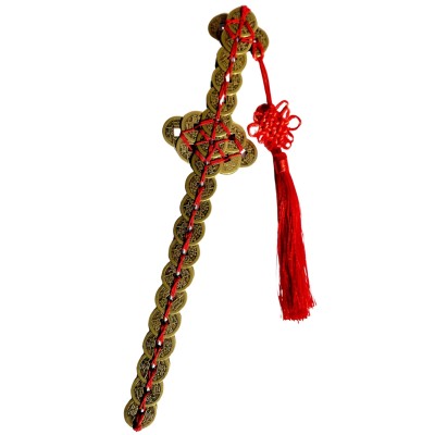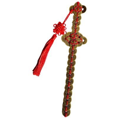 L’épée de pièces chinoises est très réputée en Chine pour éloigner la malchance et repousser les énergies négatives. Egalement appelée “Pi Hsieh Chien” qui signifie épée qui enlève le mal, c’est une amulette de protection très puissante qui coupe le “Shar Chi” ou mauvais Chi et apporte ainsi sérénité et harmonie dans tous les lieux où elle est présente.